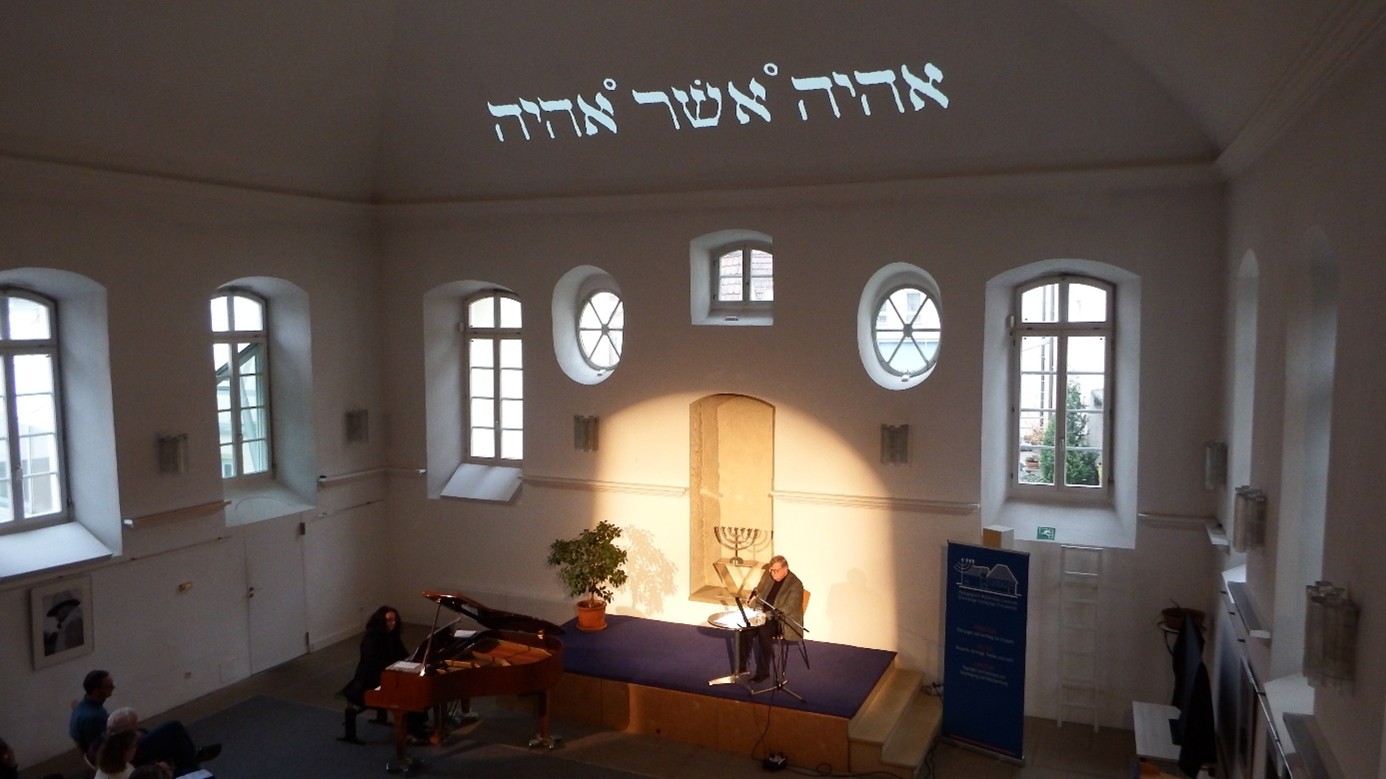 Ein würdiges Gedenken an die Pogromnacht, dargeboten in einem beeindruckenden Programm! Babette Dorn hatte wunderbare Klaviermusik ausgewählt und vorgespielt, Rudolf Kurz hatte mit der Kirchentür von Langenburg, mit seinem Denkmal für das Konzentrationslager Hailfingen/Tailfingen sowie mit den Bildern vom „Heiligen Sand“ in Worms die „Bilder an der Wand“ beigefügt und Karl-Josef Kuschel verband dies alles durch seine tiefgründigen Interpretationen. Hier sind einige Gedanken zusammengefasst.